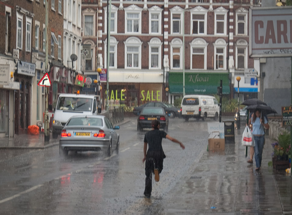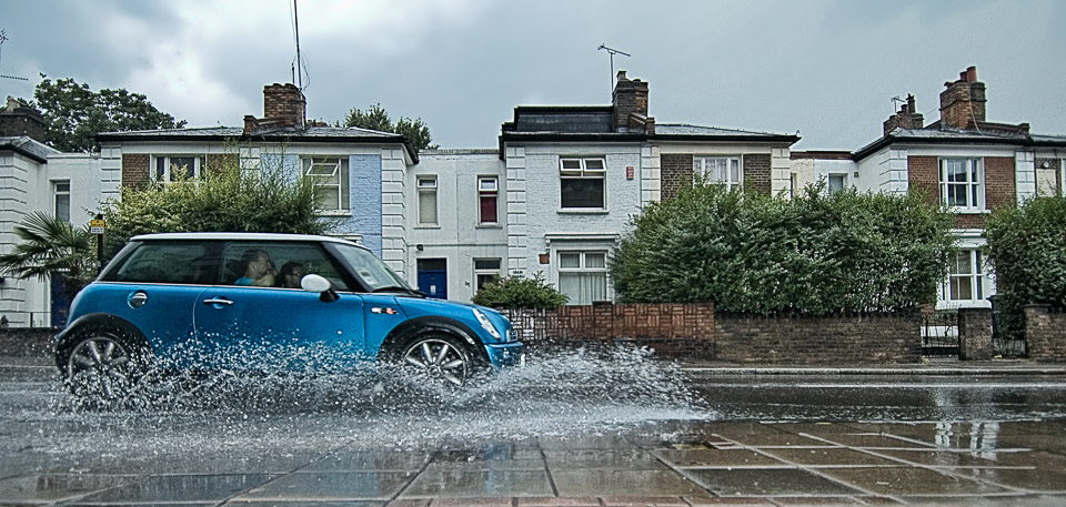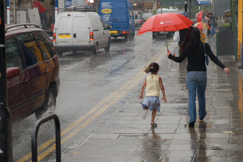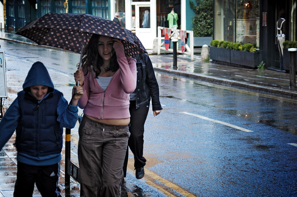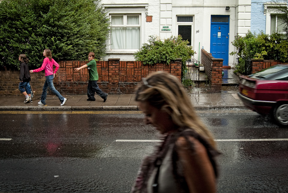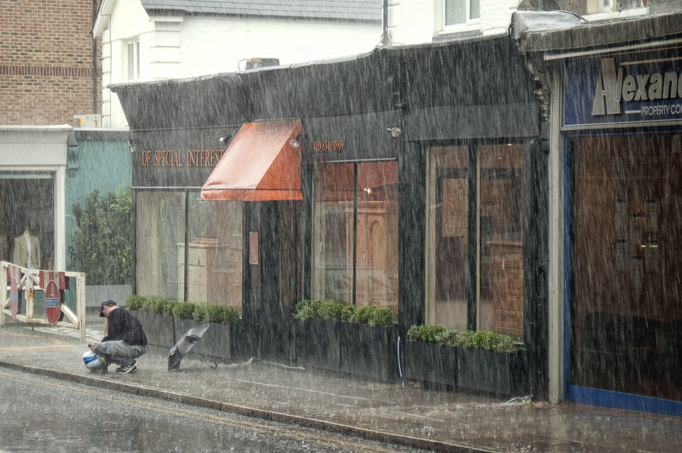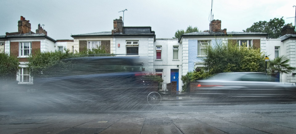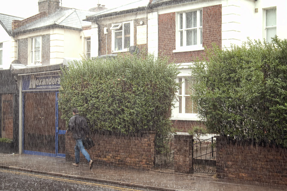 London occasionally sees unseasonal, almost tropical rain. For 8 years, my studio space was based on Park Road in Crouch End, North London, and on the rare occasions that this heavy rain showed up, I’d grab my camera and go to shoot the view outside. More than the views, it was the reactions that fascinated – this wasn’t your usual English drizzle, but downpours that found people wholly unprepared, scrabbling for a solution or just going with it and enjoying being soaked to the skin.
